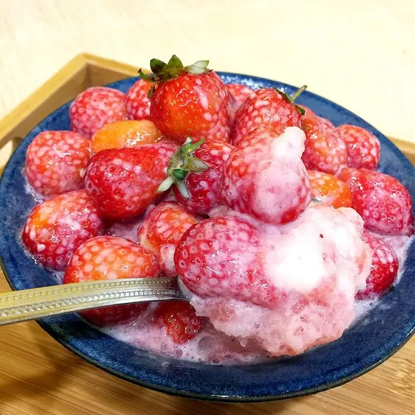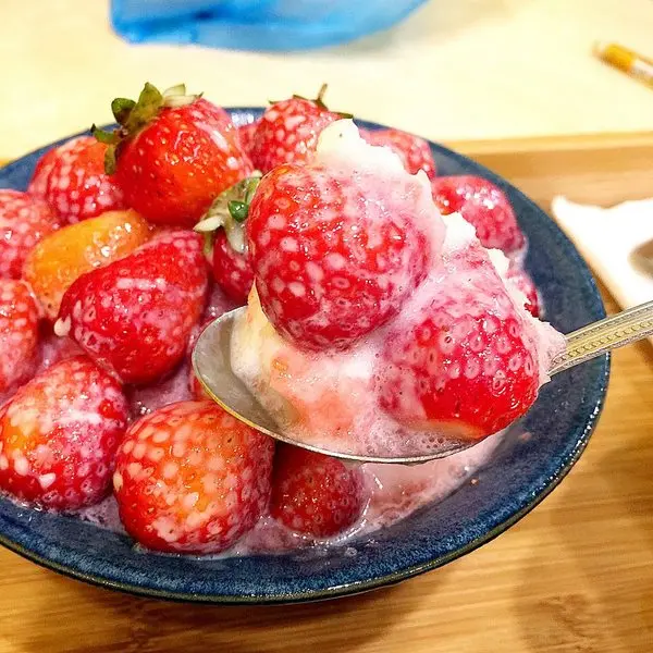 底層是剉冰,上方則是鋪滿了一顆顆的草莓