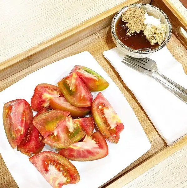 #薑汁蕃茄 一整盤的牛番茄+秘密醬汁