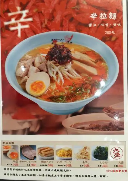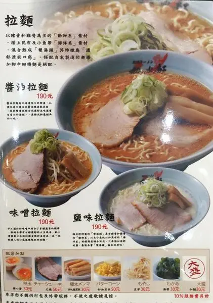 號稱北海道米其林紅色指南的梅光軒拉麵.價位在190-260元不等..