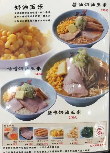 小妹本來要點味增奶油拉麵240..聽服務生建議點味增拉麵190元優惠贈送選奶油玉米50元-就是味增奶油拉麵~好貼心喔!!