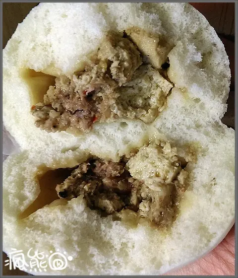 哈~這是我第一次吃耶,滿懷著好奇心打開了這包子,啊...那臭豆腐的味道真的好強烈呀,包了肉餡和臭豆腐來著呀,對我來說沒有好不好吃的問題,因為味道真的是太衝擊我了XD,§以歡吃臭豆腐的人不妨一試。