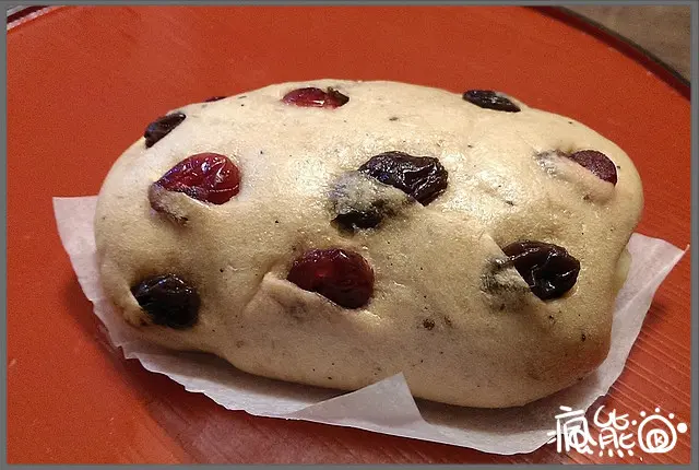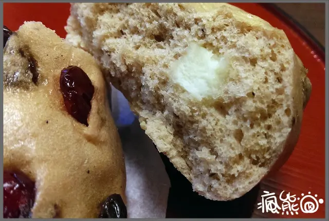 這個我喜歡耶,莓果本身的酸甜加上軟Q帶甜的麵皮,基本上九挺好吃了,當然當中包了一根起司條,加入了奶鹹香,吃起來的風味更吸引人了,這個我真的挺愛的呢。