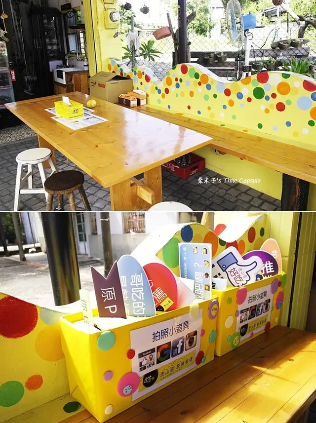 鮮亮的黃色小店搭上繽紛的大小圓,遠遠開來就看道啦!