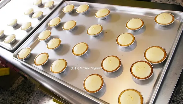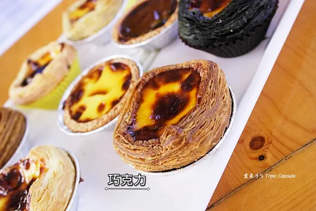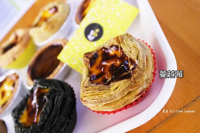 櫃檯上擺著今天剛出爐的各是口味蛋塔,