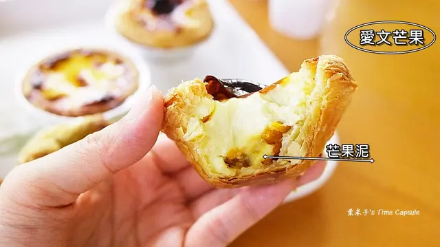 因加了芒果泥在蛋塔底層所以吃起來多了果香,感覺較清爽!