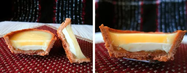 檸檬典藏塔 50元 原料:鮮奶、鮮奶油、檸檬、蛋、奶油、麵粉、砂糖、鳳梨、蜂蜜、奶粉、鹽、海藻抽取物 上層為天然的檸檬奶餡,酸酸甜甜的口感,非常清爽中間為香醇濃郁的鮮奶,讓酸甜的滋味中,多了香醇的奶香底層交疊著龍眼花蜜漬鮮採的鳳梨餡,還可吃到豐富的纖維 香甜迷人的獨特風味,令人回味