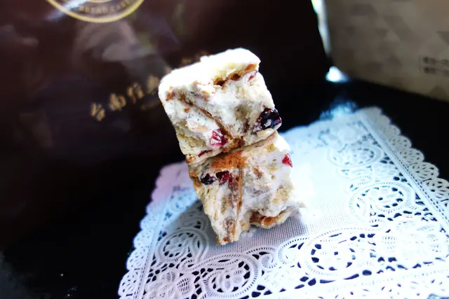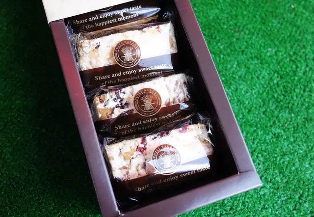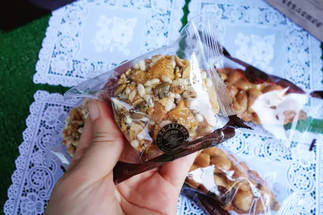 大口吃來有著米香的酥脆和堅果香夾雜著果乾的酸甜香..吃來口感豐富~很適合當成下午茶來一塊也很不賴