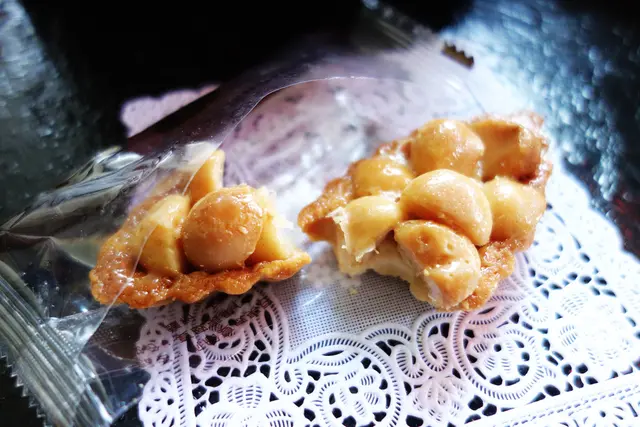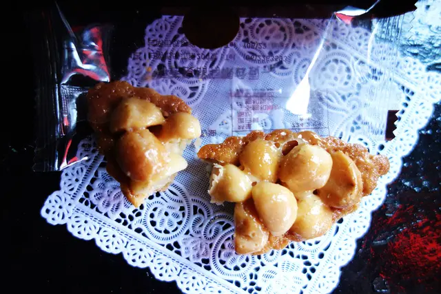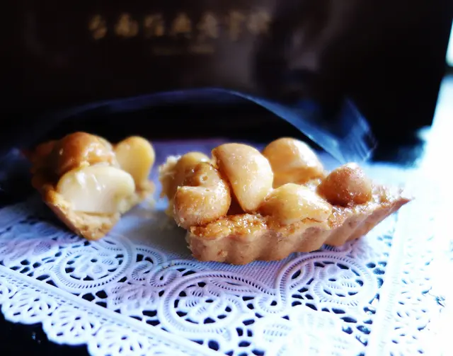 塔皮不厚吃來剛好的餅香酥脆 結合上層大大顆完整的澳洲夏威夷豆嚼著豆香清脆口感和包裹在外層的微微香甜...好吃不甜膩還會唰嘴