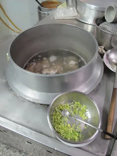 肉圓店一慣特色~店家提供用大骨熬製而成滴湯品供客人自行取用