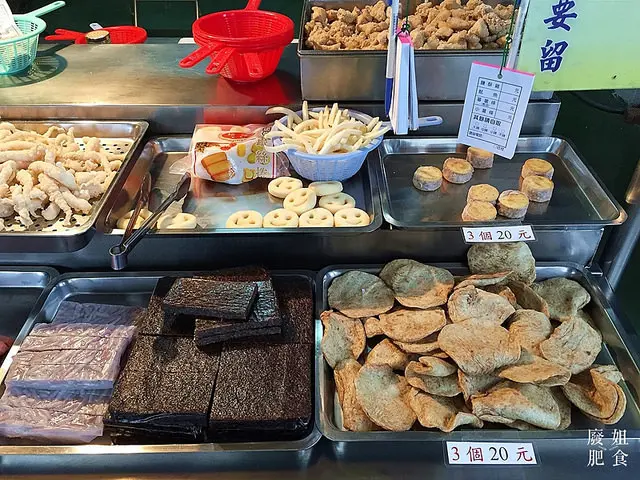 ▲ 現點現炸,食材一格格排的很乾淨,環境也很整潔,而且老闆堅持天天換新油