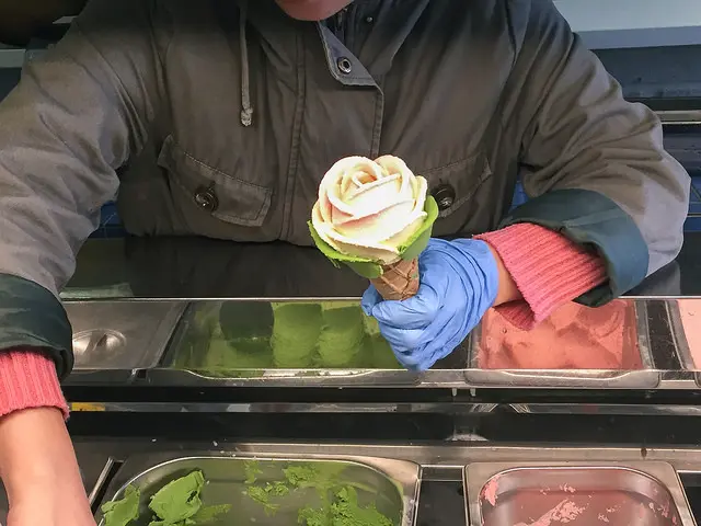 ▲ 親眼看到玫瑰花冰淇淋的製作過程,一片片堆上去的花瓣好有趣