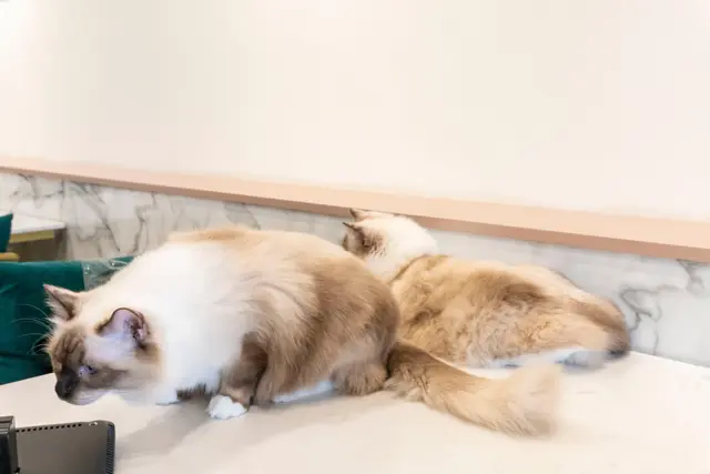 兩側牆面都是毛孩子們的休息、移動空間,在吃飯的時候或許就會有小貓咪從旁邊緩緩散步過來陪吃呢!