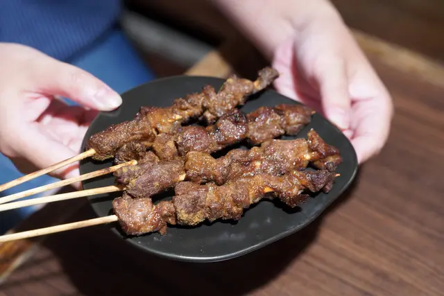 ▼孜然羊肉串:羊肉串孜然香氣四溢,越咬越能感受羊肉肉汁的甜美,搭配啤酒簡直是絕配!