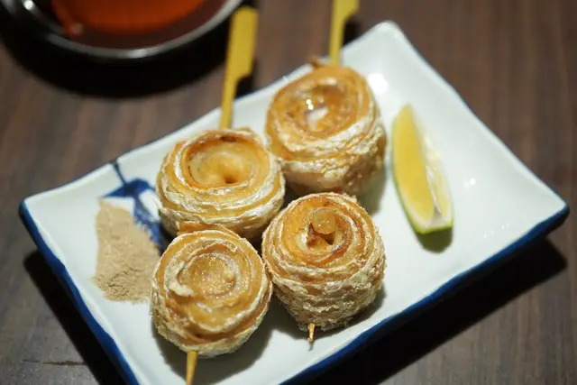 ▼炸白帶魚捲:外酥內軟,魚肉鮮美,擠一點新鮮檸檬汁更添風味。