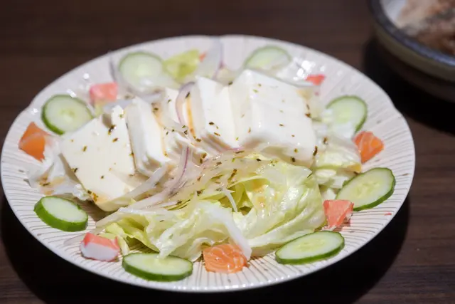 ▼和風沙拉:豆腐滑嫩、生菜爽脆,加上和風胡麻醬,似乎還有芥末子微微的辣,清爽開胃。