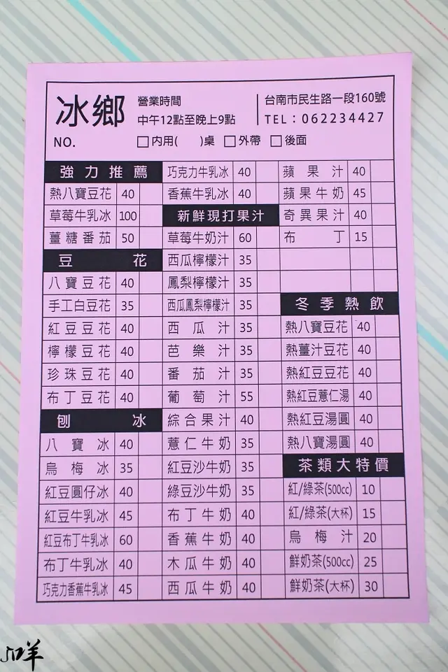 從五十咩到台南就學後,每到冬夏時節,冰鄉兩款冰品的名聲總是會不絕於耳,這間店在五十咩的口袋名單中不知過了幾年,這次終於逮到機會一償宿願。