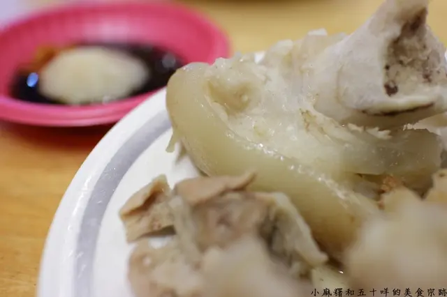 五十咩最愛吃蒜泥豬腳了,雖說蒜泥豬腳沒明顯味道,但是配上醬汁,將豬腳沾著醬汁吃還不錯,店家用油膏加上蒜泥,搭配一些辣豆瓣醬調味。