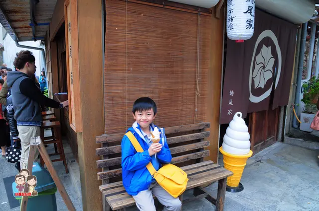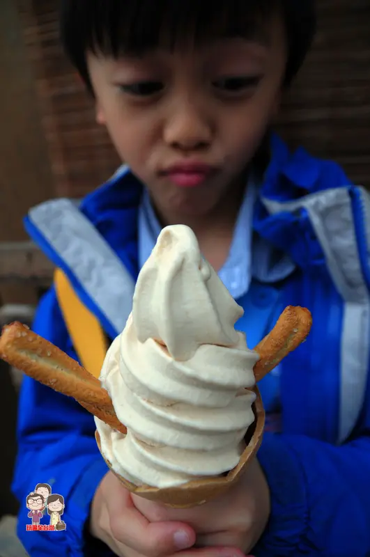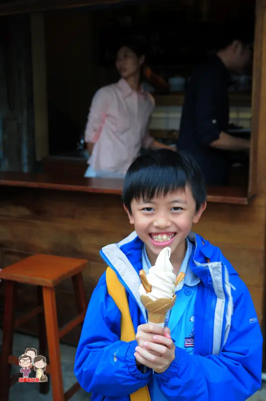 看完了店內情形,小子已經笑嘻嘻的捧著霜淇淋囉!