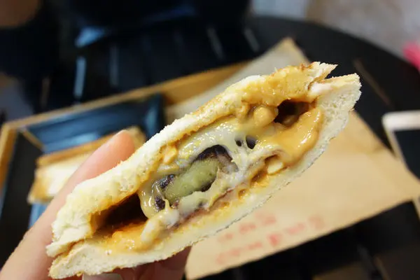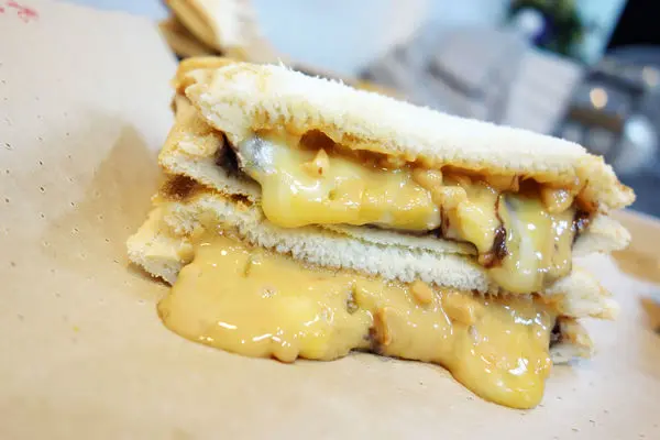 軟香的吐司夾著香濃花生醬混著巧克力香甜~好吃又不甜膩..