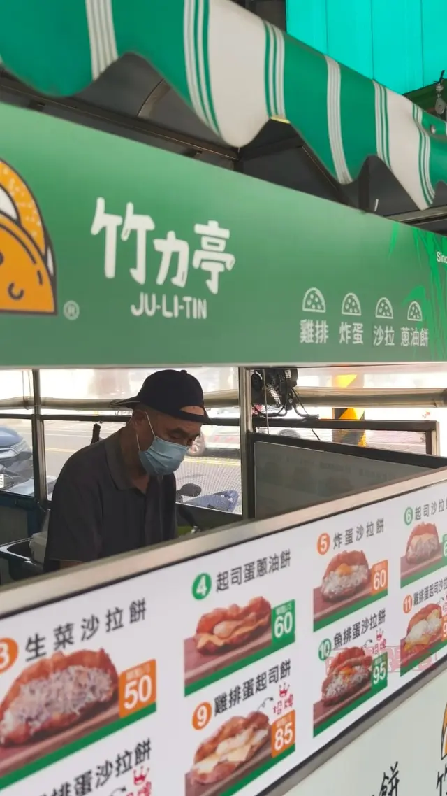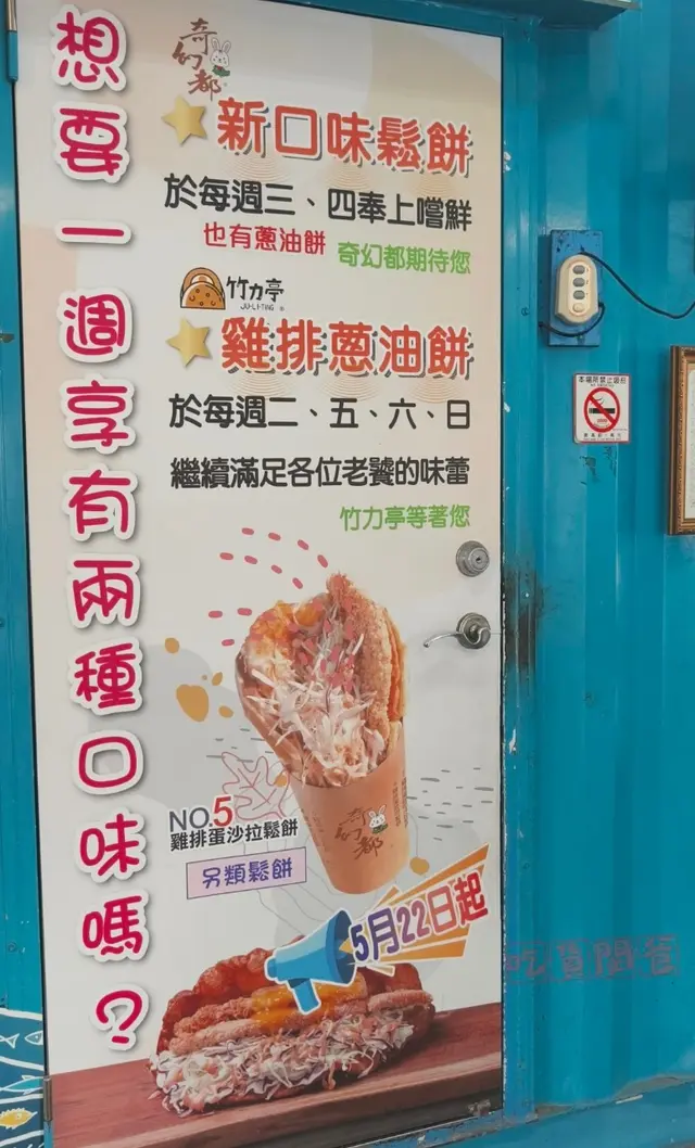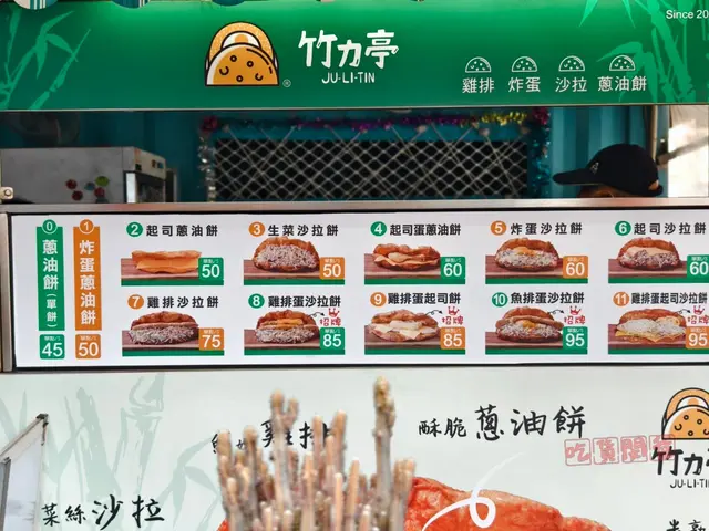 蔥油餅除了來個半生熟的蛋之外混搭生菜沙拉、雞排之外竹力亭竟然還有台南獨有的虱目魚肉來作為內餡真的是絕!
