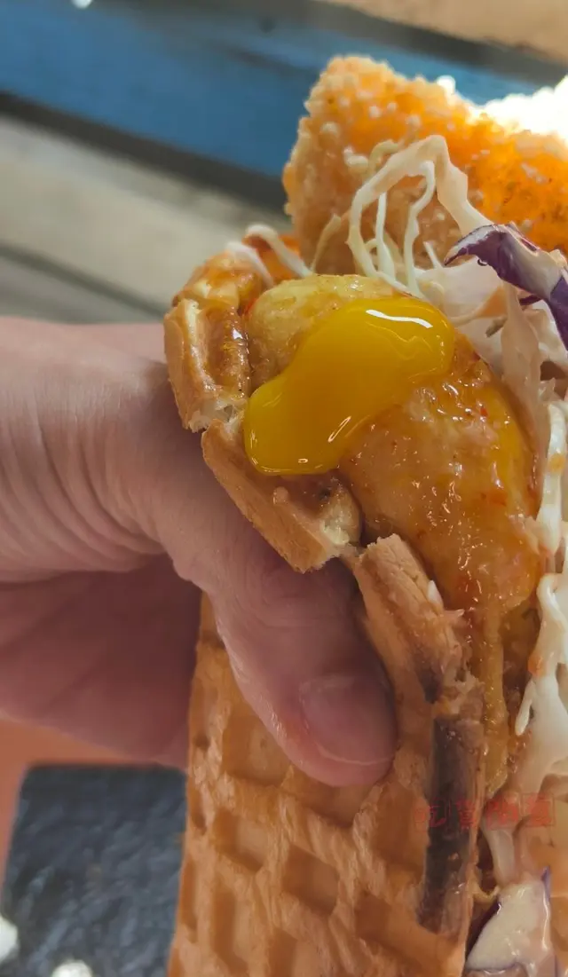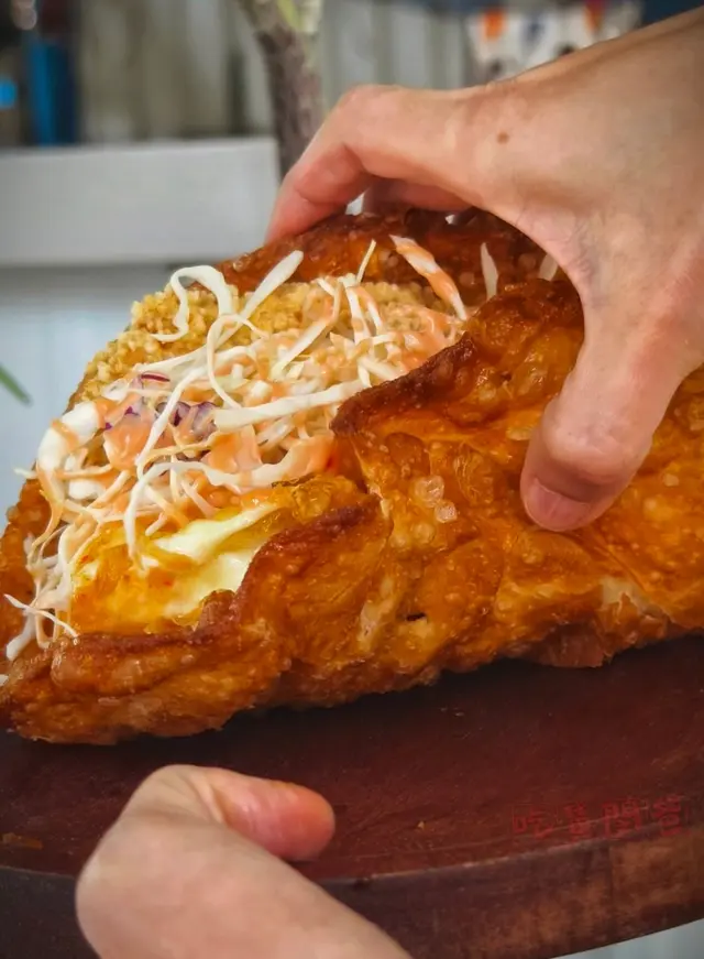 這跟炸蛋蔥油餅完全不同感受,這次是鬆餅的酥香..