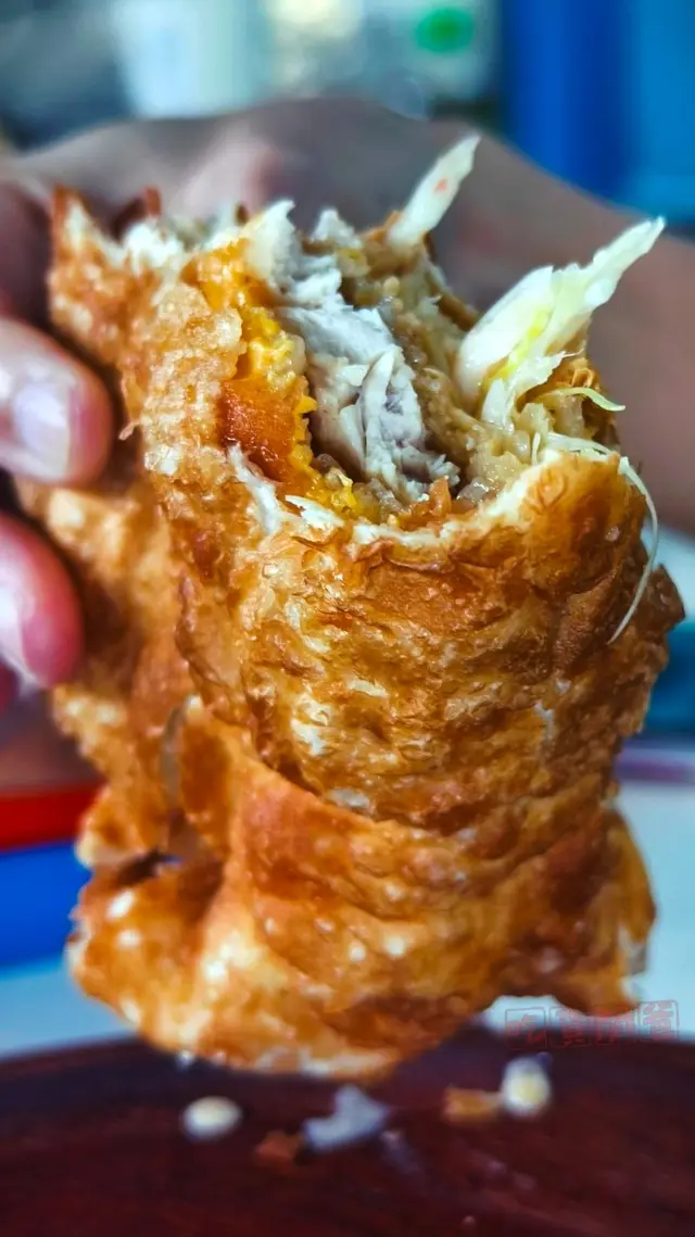 夾帶爽快的雞肉多汁以及沙拉生菜,這吃起來可是超爽快,完全不同於炸蛋蔥油餅的口感,這個爽口吃起來不膩,沒吃過的朋友非常推薦試試!