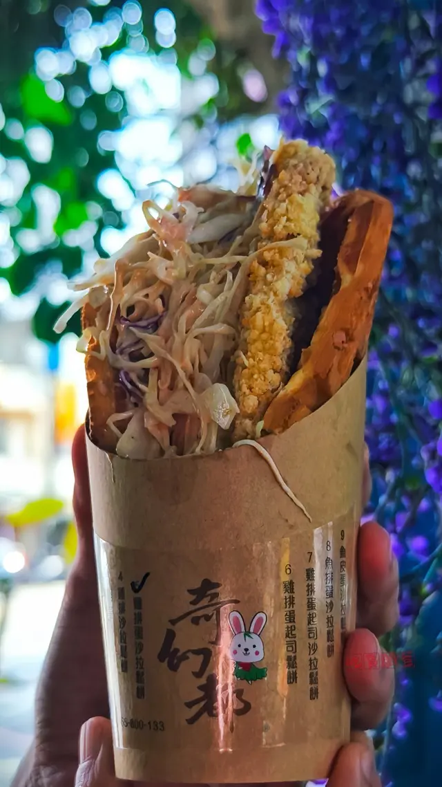 雞排告蔥油餅,吃到得是酥脆的餅,多汁軟嫩的雞肉,生菜沙拉是添增口感..