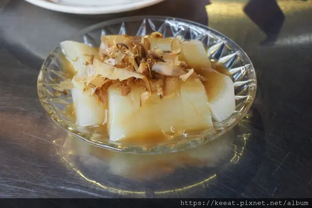 限量果然是就是好吃,柴魚菜頭吃起來非常多汁,配上甜甜的醬油膏以及上面濃郁的柴魚片,吃起來讓人覺得好滿足,有種坐在日式小攤販前吃著關東煮的氛圍,但柴魚菜頭吃起來可不是熱呼呼的;在炎熱的台南路邊,吃著冰涼涼的柴魚菜頭,整個人都清涼了起來啊!