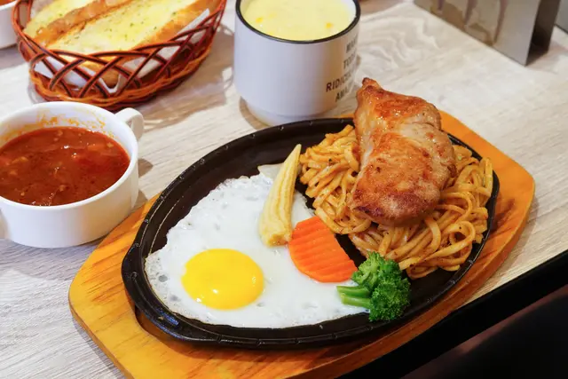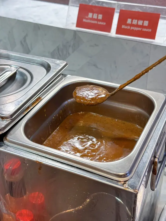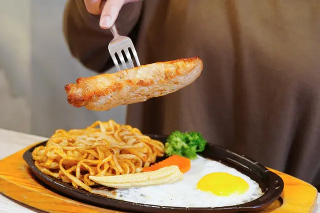 ▼肉質吃起來挺甜的,沒有奇怪的豬味,配上鐵板牛排一定要有的鐵板麵,很難不飽足誒~~