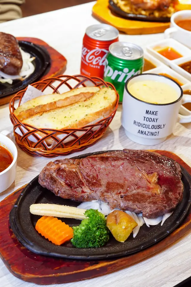 ▼吱吱作響的鐵板牛排來了!10盎司美國肋眼牛排來了!