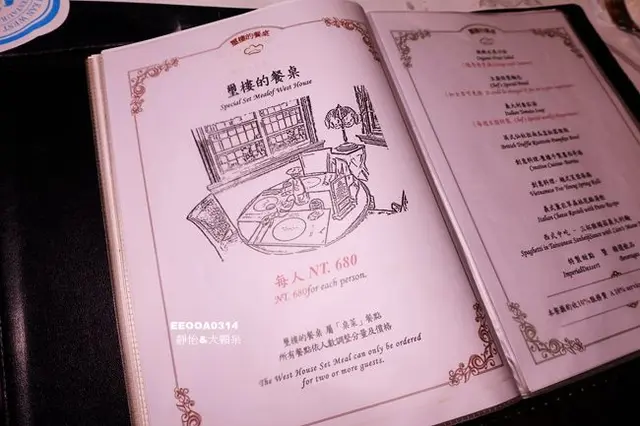 當天我們吃的是:璽樓的餐桌,每人$680元,另收10%服務費,餐點包含了沙拉、麵包、湯及五道料理,餐後還有甜點及飲料
