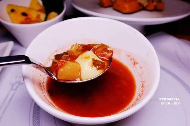 隨手一撈湯裡居然有起司塊,相當特別..湯頭非常濃郁,口感微酸微辣,口味偏重,建議趁熱喝,冷掉會偏鹹