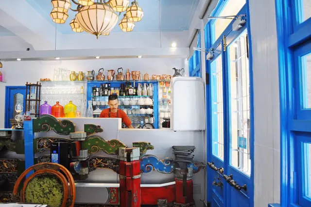 以非常地中海的藍白色作主色調,店員告訴我因為這棟大樓有個孝順的故事,所以特別挑選藍天白雲顏色,代表母親像天空一樣照料我們。原來跟地中海無關,但這個原因也太可愛了吧!