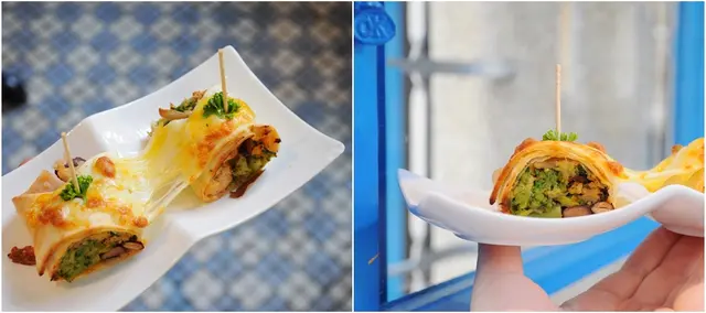 這個墨西哥卷也很有趣,我很欣賞上面的起司,好會擺pose啊。餡料有西蘭花和一些豆類,營養十足的感覺。