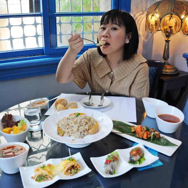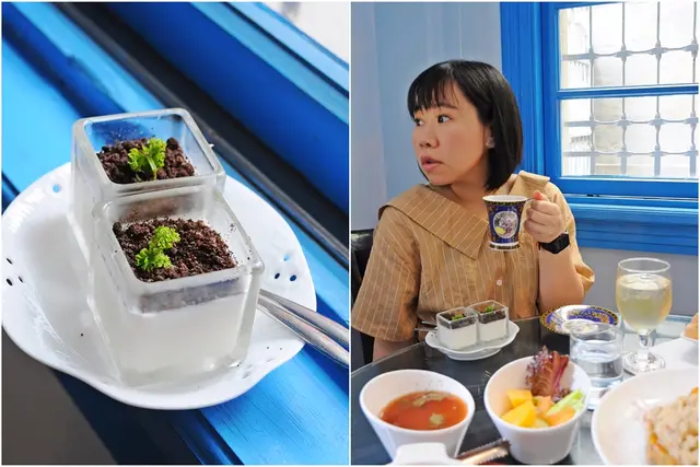 完結這一回合之前,當然還有甜品和咖啡。可愛像小盆栽的是奶凍,吃起來不會太甜,配搭脆脆的小餅乾不沉悶。最後還要用非常淑女的杯子喝一杯香濃咖啡。赤崁璽樓位於臺南中心地帶,除了餐點有心思,環境也很適合拍照打卡,不管平常是不是吃素也可以來,也要特別介紹給享受素食生活的朋友呢。