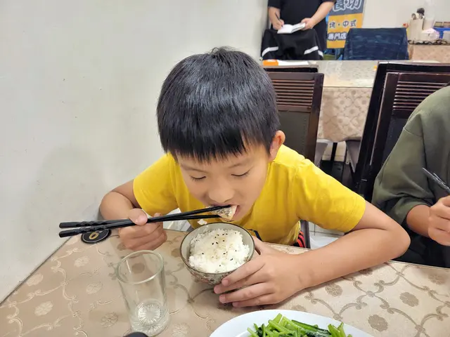 上菜囉!這上菜速度不算慢,小孩們立刻放下手機,開動!