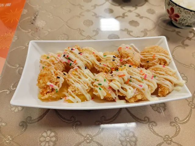 ▼小孩最愛的鳳梨蝦球,看似普通的菜色,但裡面的蝦子新鮮,吃得出來沒有泡藥水