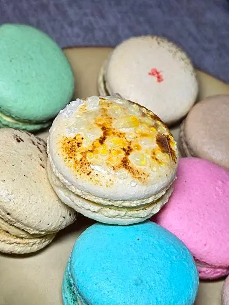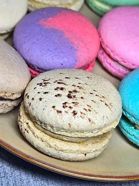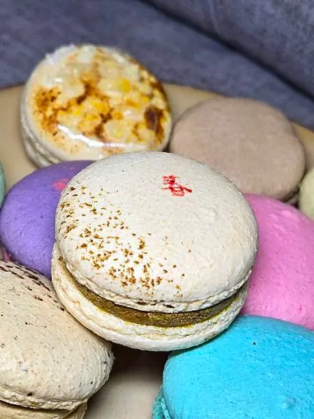 咖啡:這款馬卡龍外表也太可愛了,老爺很涮嘴吃起來時,味蕾裡感受到濃郁十足的咖啡香氣,內餡Q帶點綿密紮實口感,好好吃,咖啡控的你,別錯過了唷!