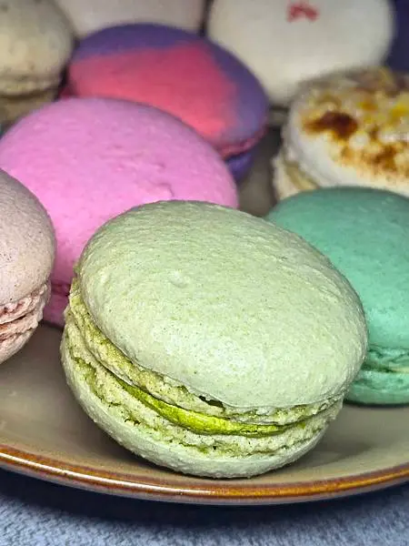 抹茶:根據店員推薦,抹茶口味馬卡龍在店內也是排行前三名,是拾參的招牌口味。梅子淺嚐幾口,喜歡抹茶的香氣,帶點微微苦甘味,果然,讓我一不小心瞬間秒殺,哈