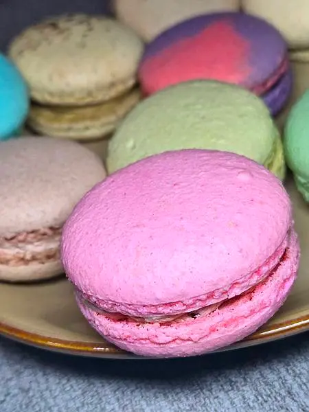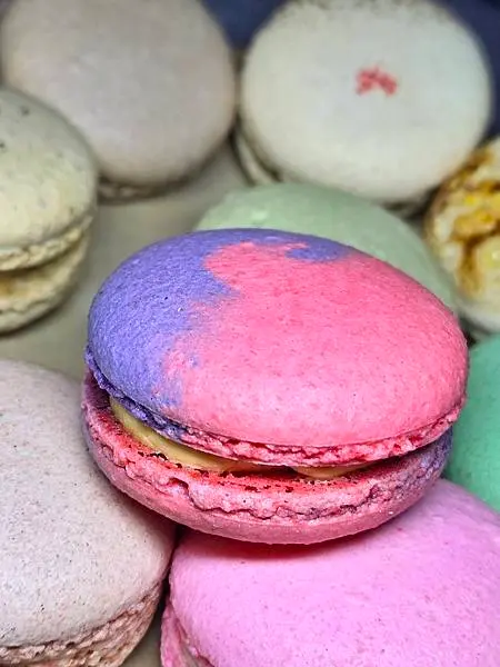 玫瑰馬卡龍:老爺特地拍了內餡讓大家看看,超特別的,馬卡龍裡內餡,還添加玫瑰花瓣在裡頭,富有濃郁玫瑰香氣,這款口味馬卡龍真的讓我們倆印象深刻啊!