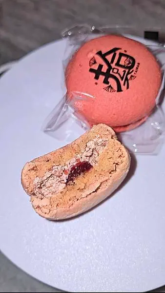 覆盆子馬卡龍:老爺獨享啦~吃起來帶點酸甜果泥,完整的保留新鮮莓果的風味,微微甜不膩口,喜歡