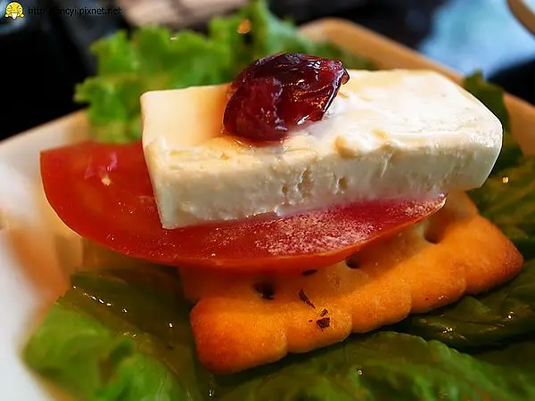 滿奶香的乳酪搭上帶點酸甜的蔓越莓、蕃茄和餅乾,意外的好搭啊
