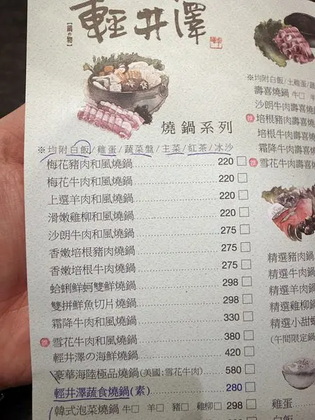 服務生 告訴我們 輕井澤鍋 現在 培根牛肉 正在促銷