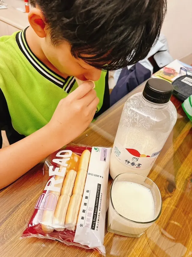 ▼所以早餐就讓他配著豆漿喝,豆漿口味仲春堂中醫隨時會變,這次買的是枸杞、芝麻跟杏仁口味!