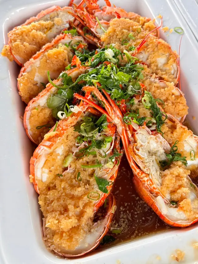 人人吃龍蝦,吸滿蒜香的龍蝦肉,Q彈鮮甜,我隔壁阿伯吃到最後連殼也要吮一吮!
