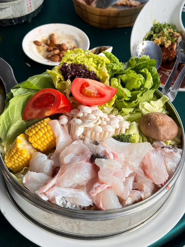 最後一道熱菜也是澎湃海鮮系,滿滿的石斑魚,光看肉質就知道非常鮮!再配上滿滿的白菜、香菇、玉米等等鮮蔬,這鍋湯頭我一定無法錯過…
