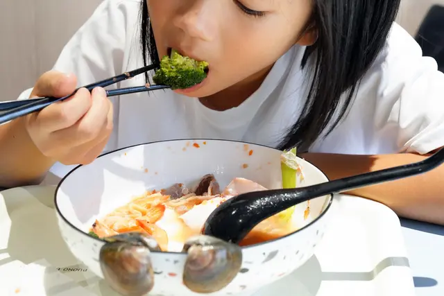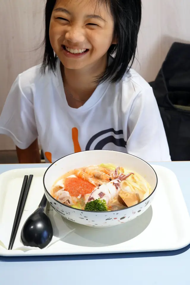 ▼女鵝果然也像我,第一口一定先喝湯!英文課下課餓扁啦!