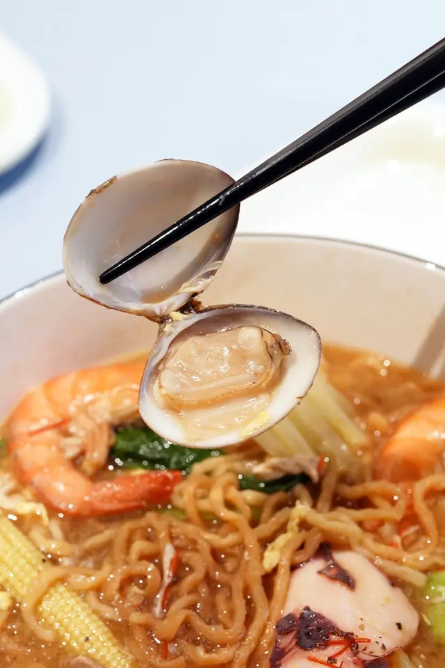 ▼蛤蠣是大顆的!咬下去會有汁、有鮮美。