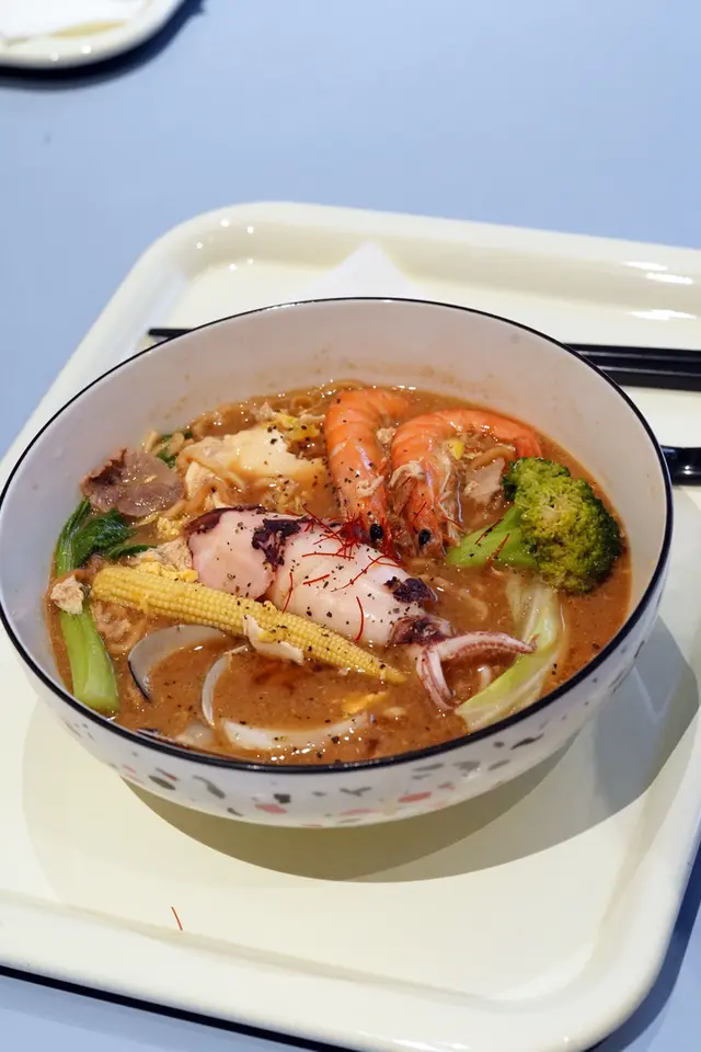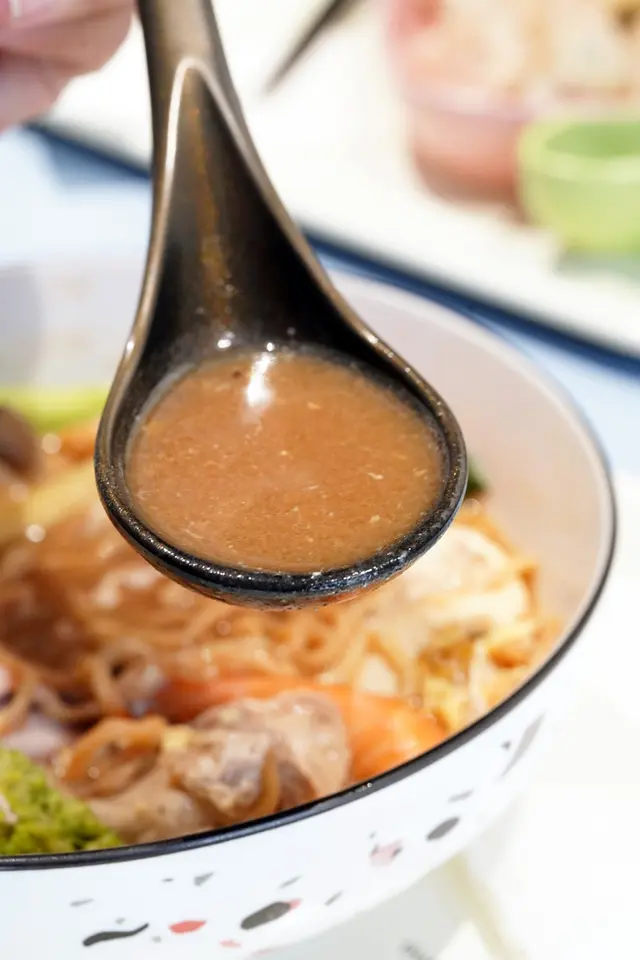 ▼意麵是細長飽滿的那種麵體,蛋香味誘人,在湯頭裡面浸泡也不會軟爛油膩,吸附湯汁一大口吸進去,滿滿的一口吃起來很過癮!