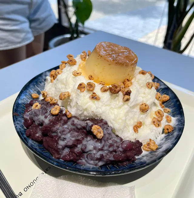 ▼牛奶雪花冰+紅豆+布丁+甜麥仁